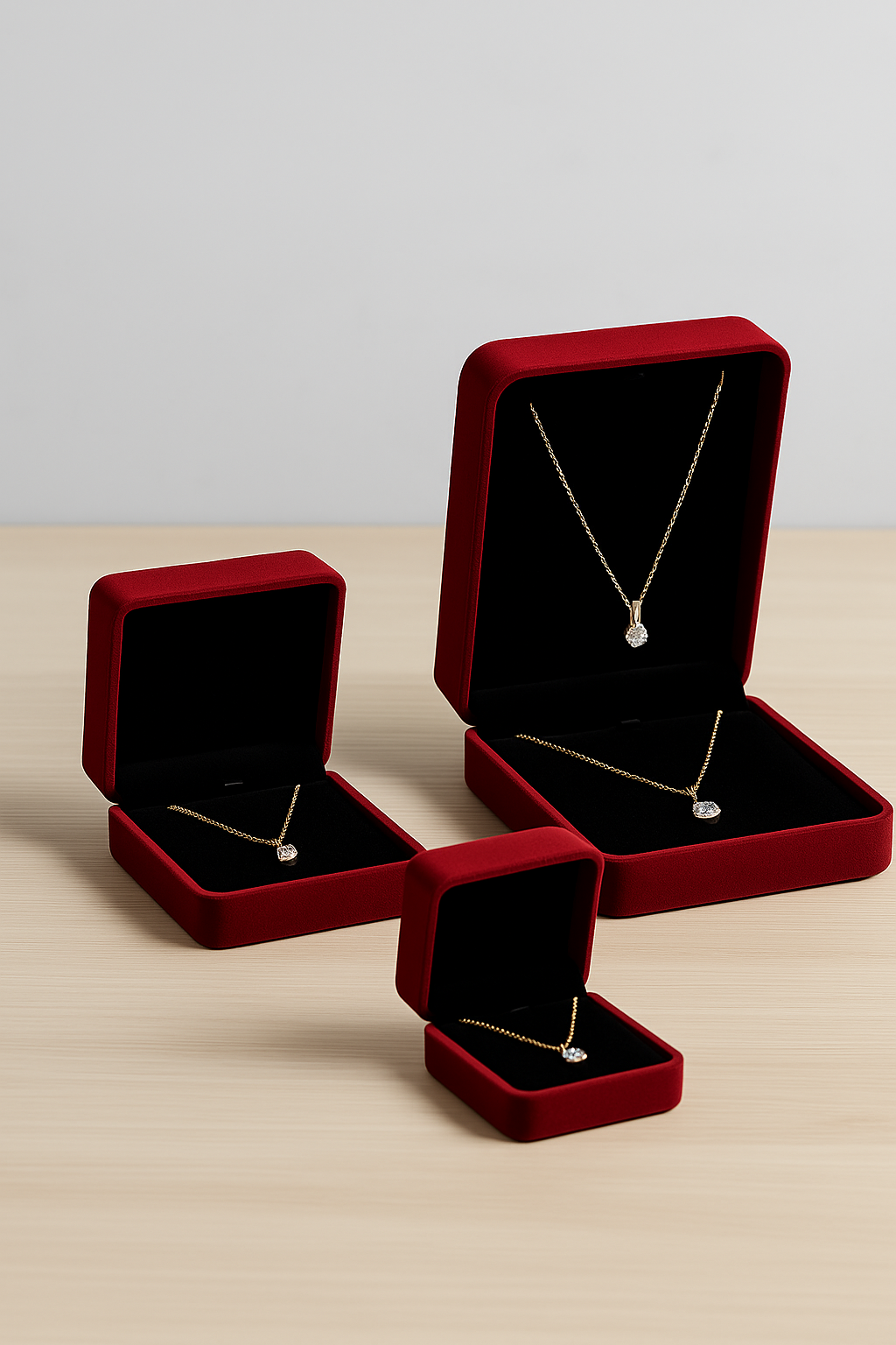 Elegant and spacious boxes crafted to hold necklaces securely. Perfect for luxurious presentation, gifting, and safe storage.